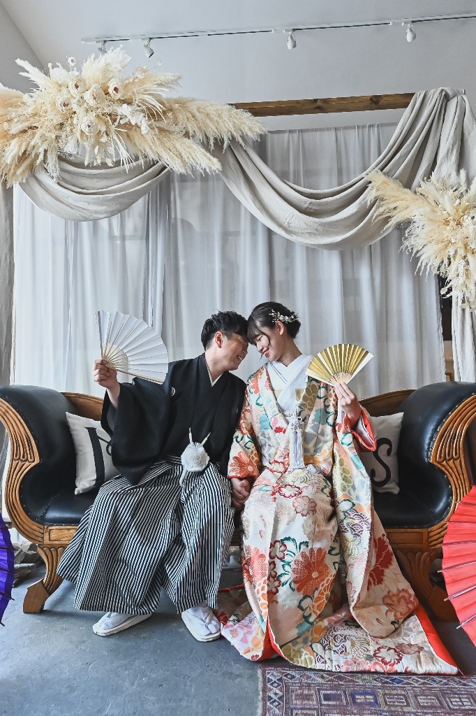 やさしい光が差し込むアトリエスタジオで色鮮やかな色打掛とオシャレに撮影☆ | 名古屋の前撮り&フォトウェディング【公式】WEDDING AVENUE