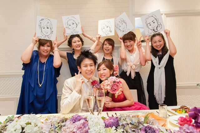 また、大好評の似顔絵師の入った演出!皆様にも似顔絵のプレゼントです♪これは嬉しいですよね!
