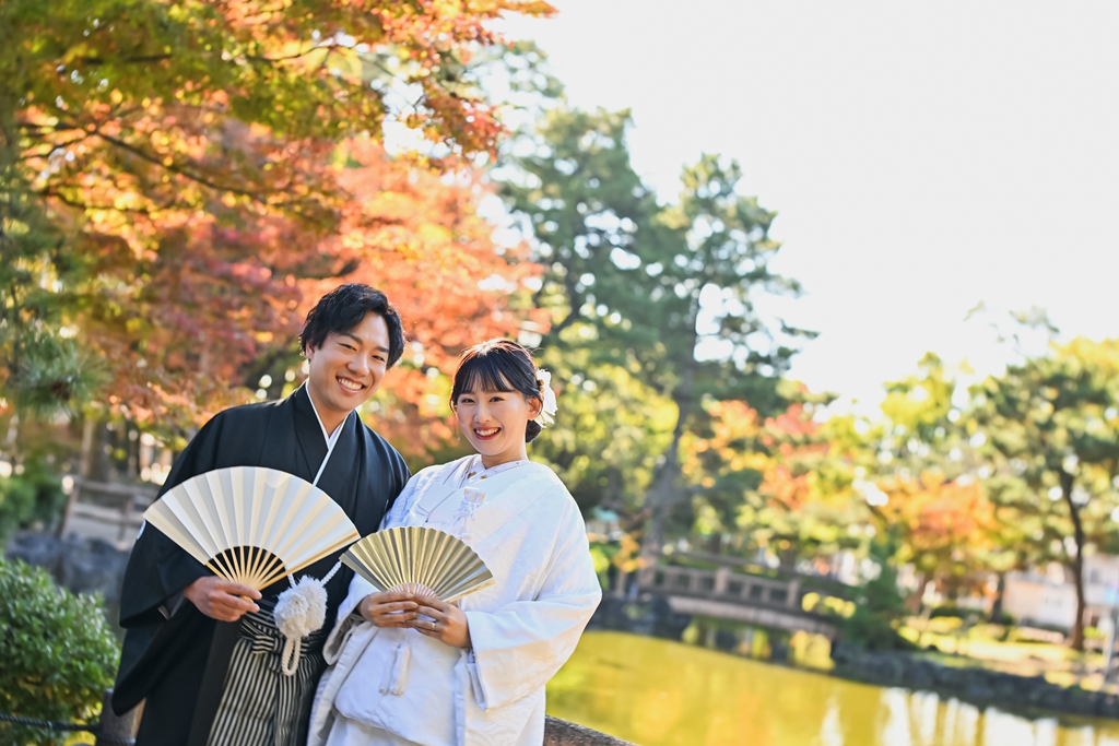 お2人の白と黒の衣装が、紅葉により和装の上品さや美しさが際立つ撮影になりましたね♡