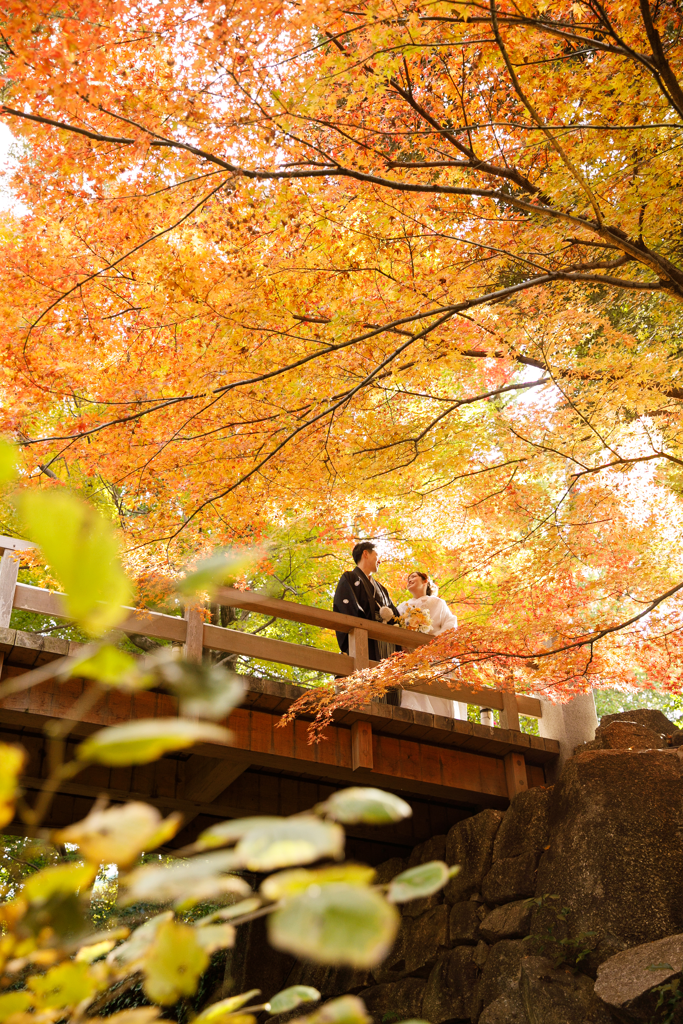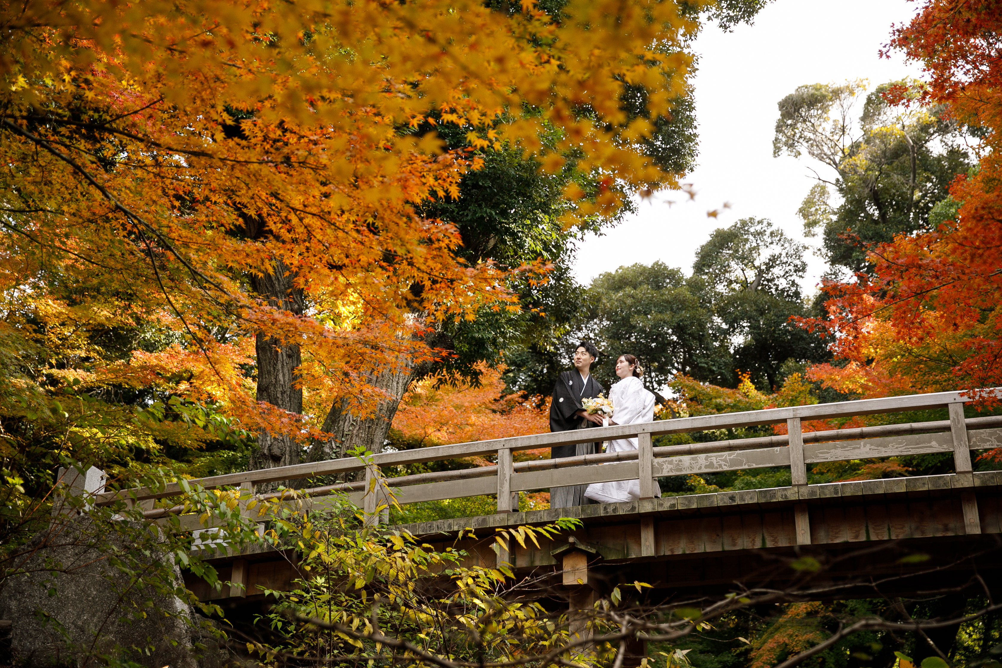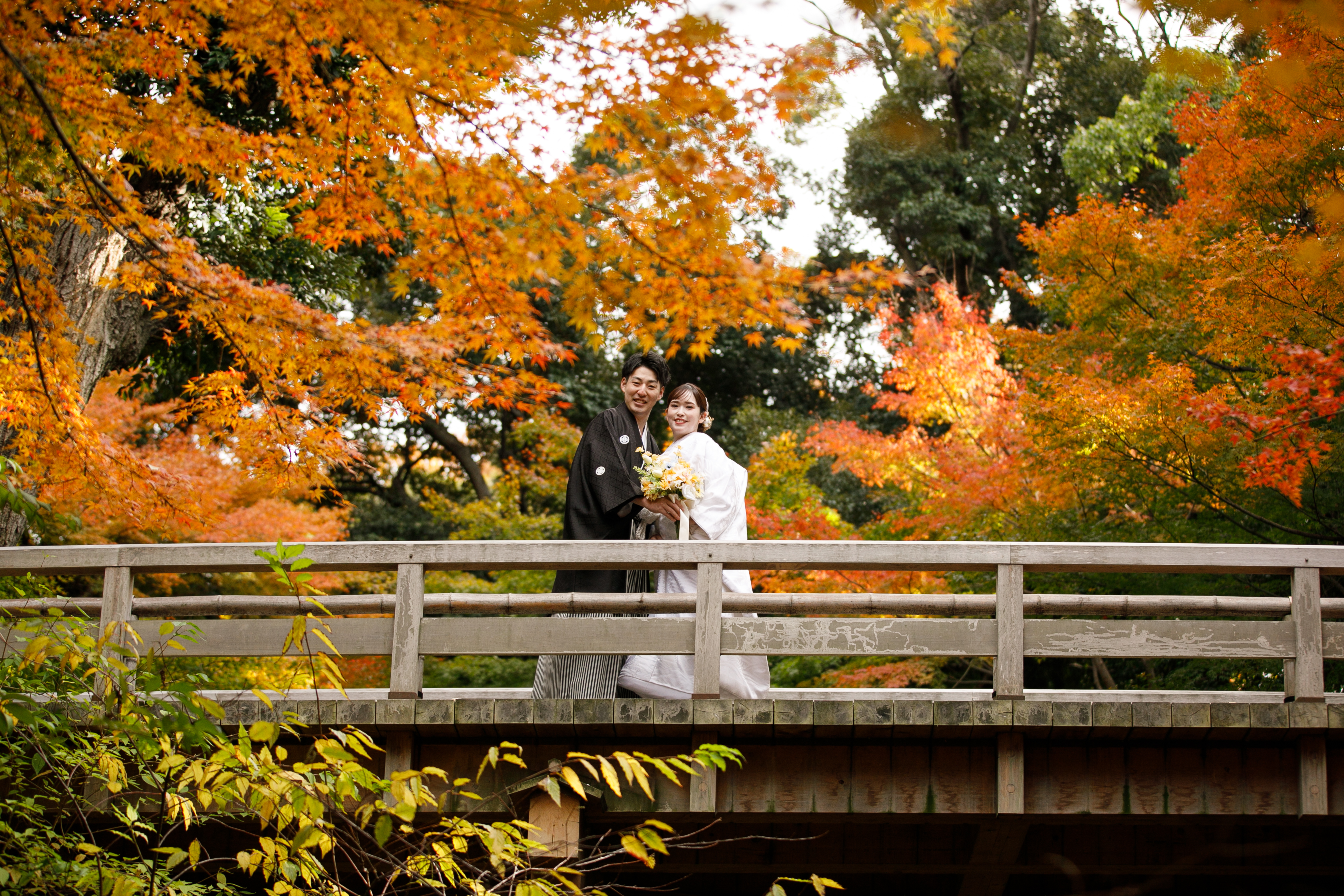 美しすぎる紅葉のもとで過ごす、一生に一度のウェディングフォトタイム