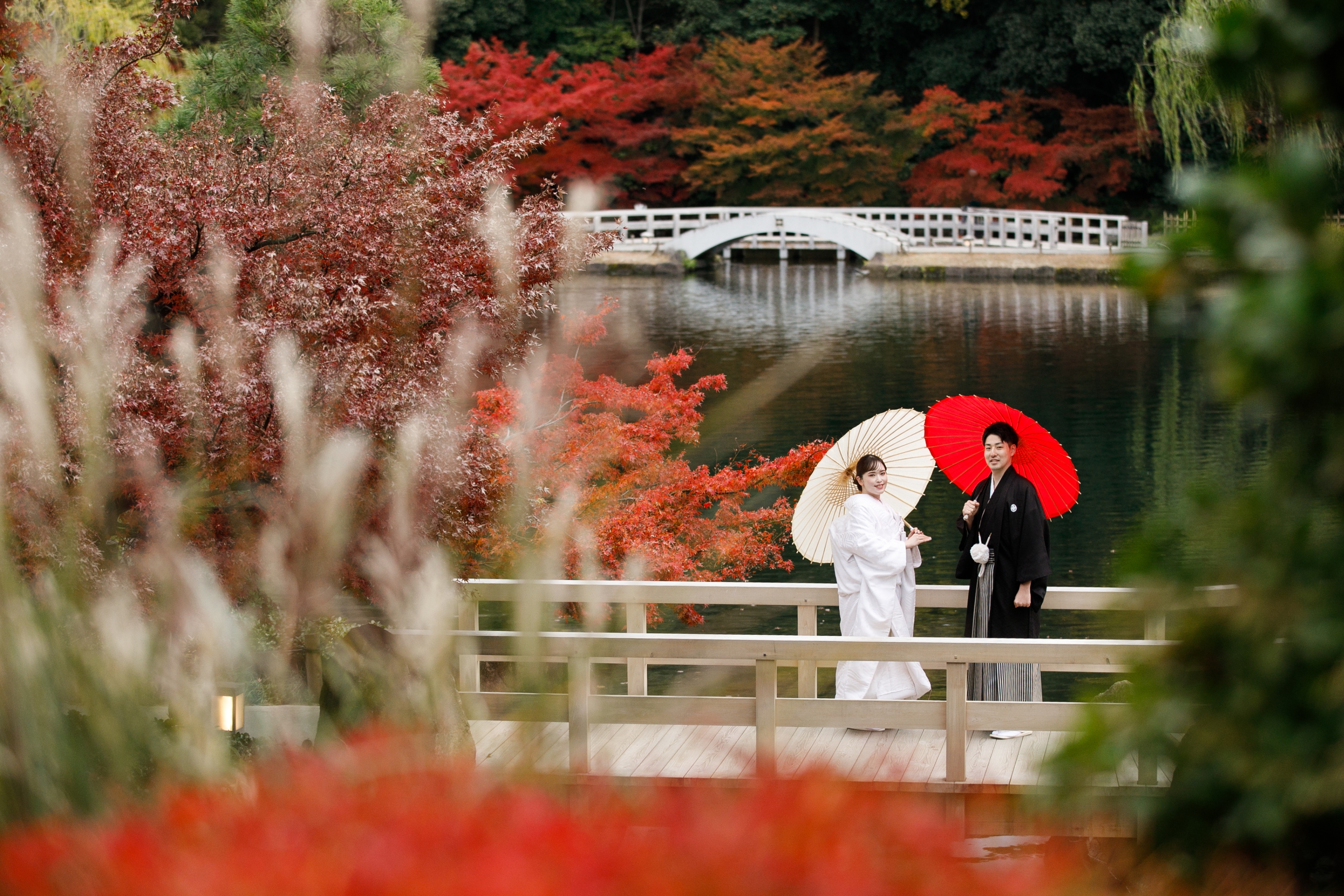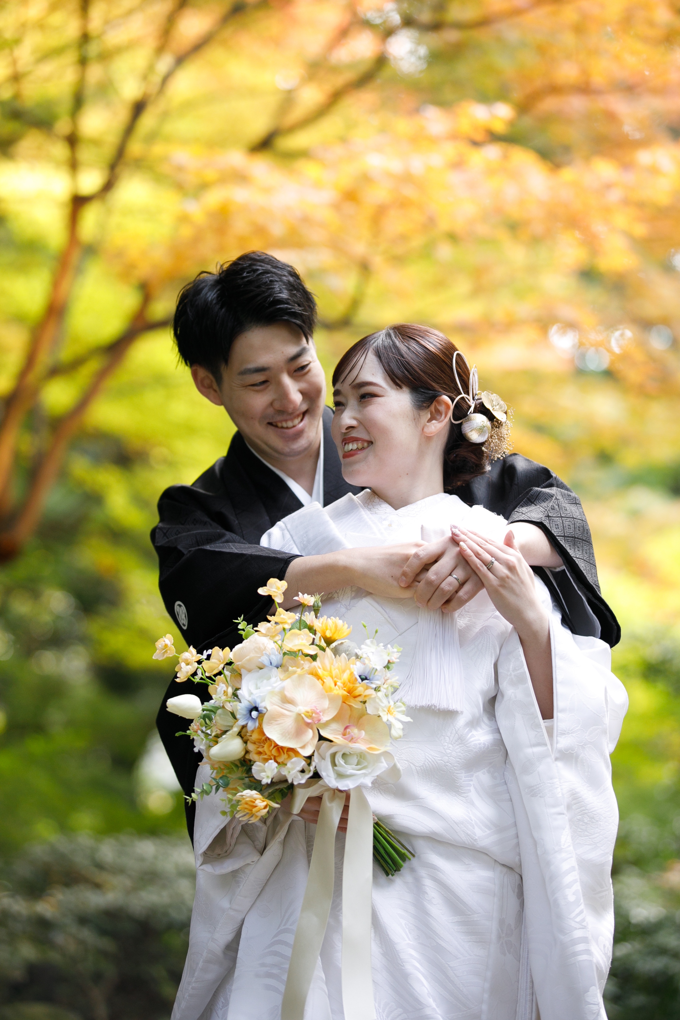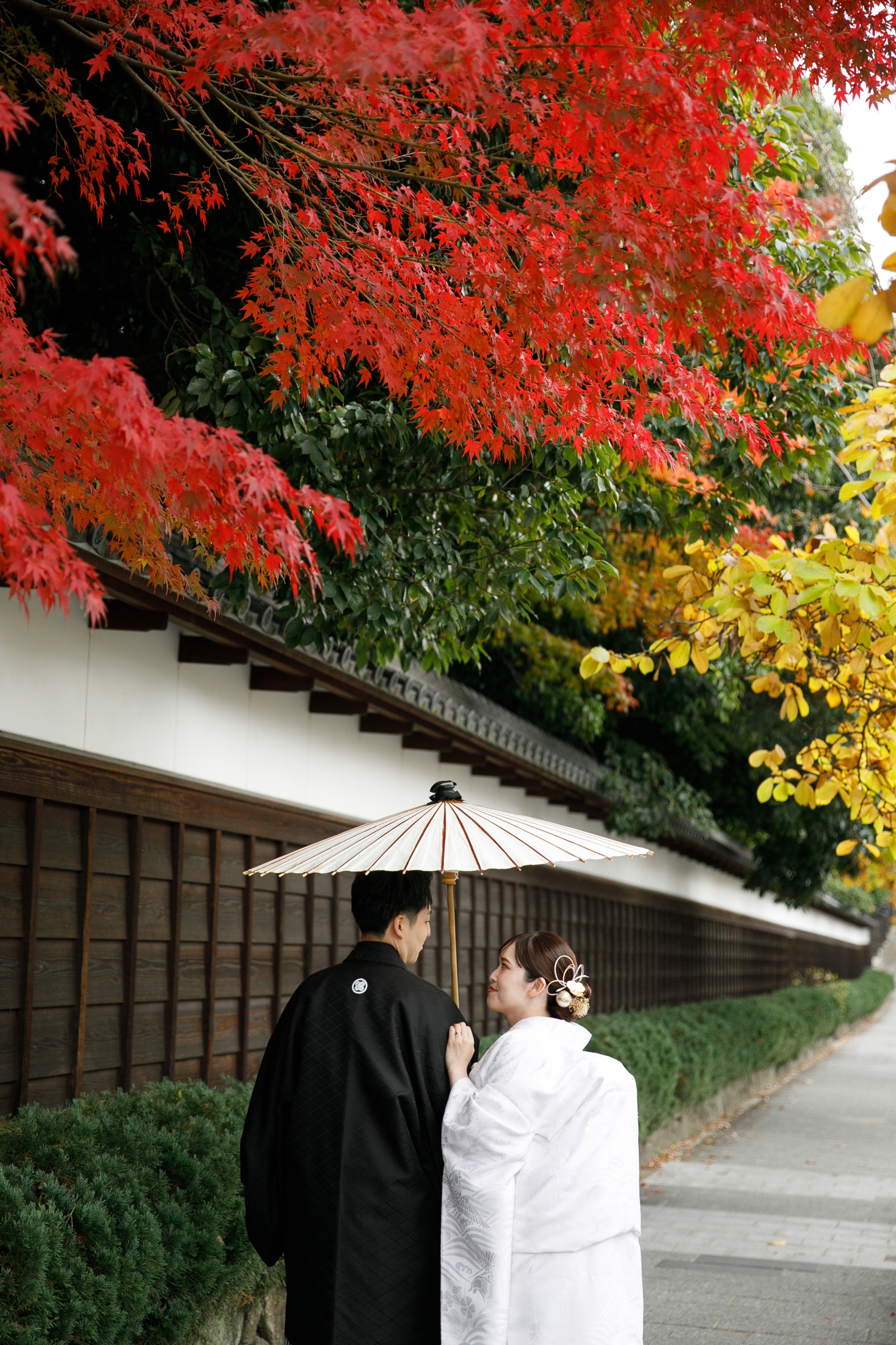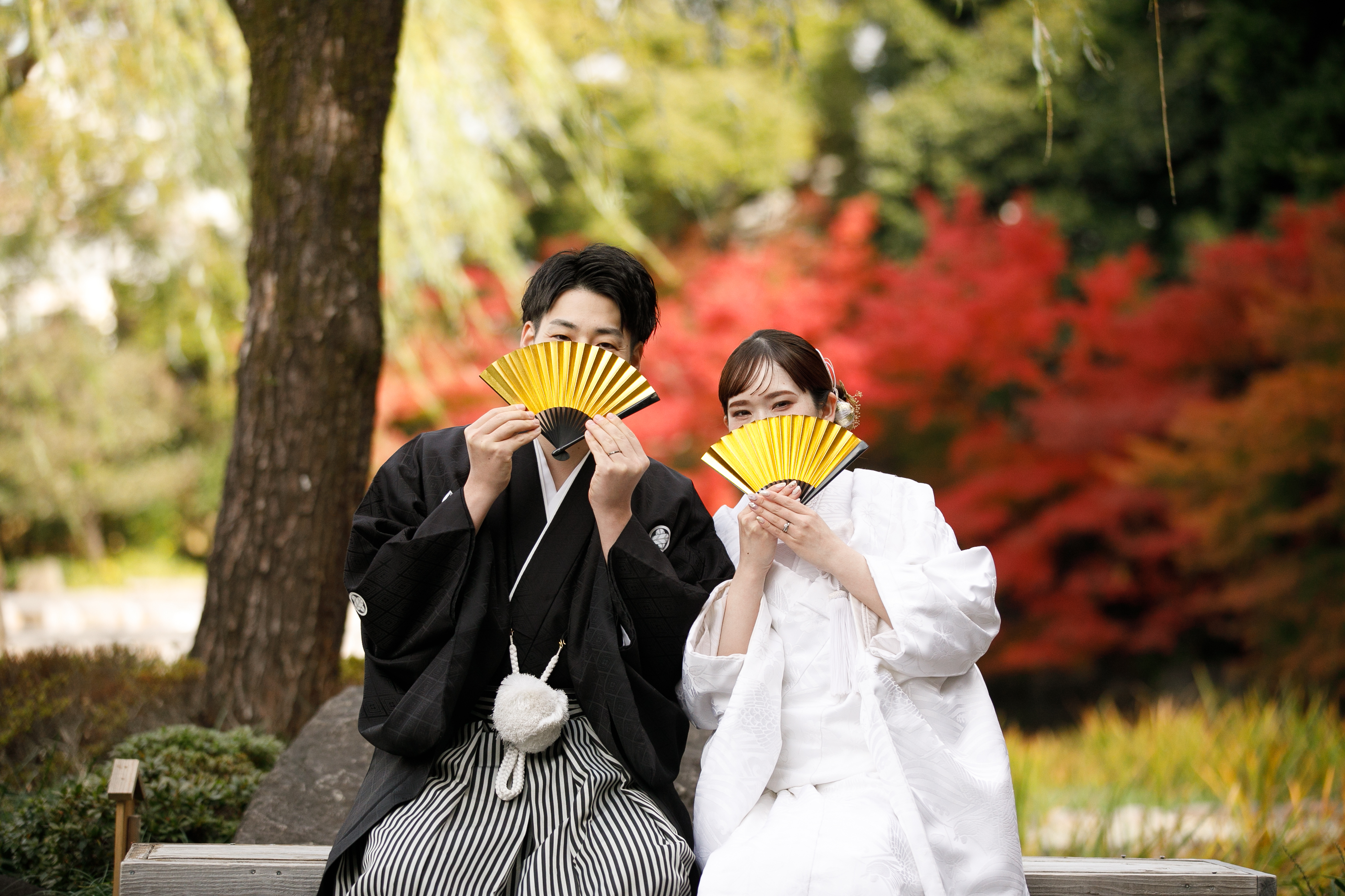 美しすぎる紅葉のもとで過ごす、一生に一度のウェディングフォトタイム