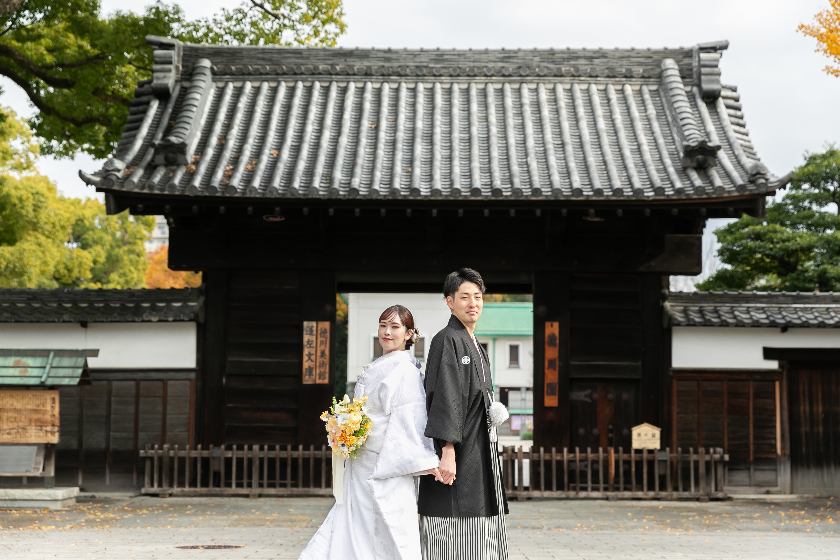 一生に一度の記念撮影に相応しい、素晴らしいロケーションでした!洋装のお姿とはまた違った、凛とした佇まいのお二人も素敵過ぎます♡