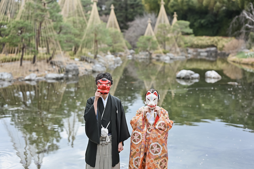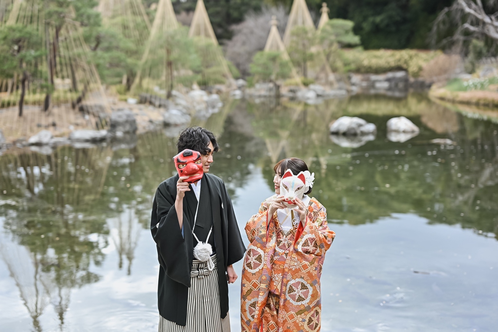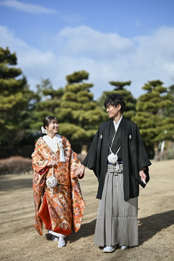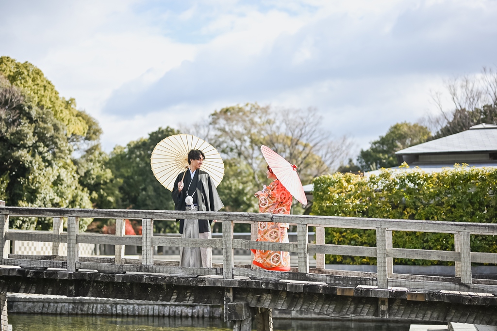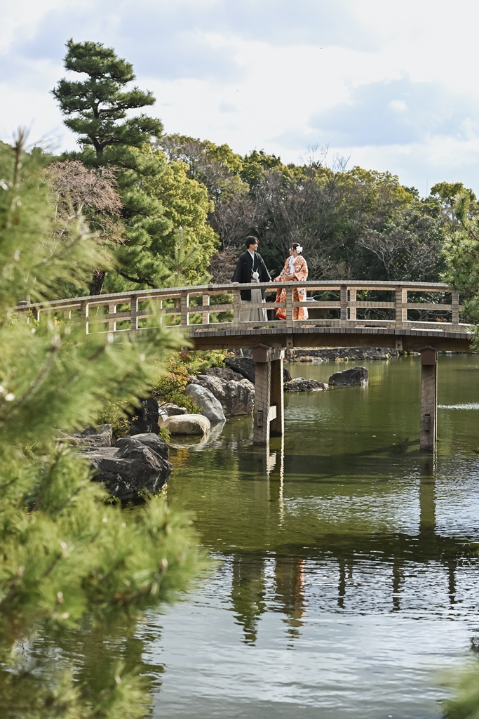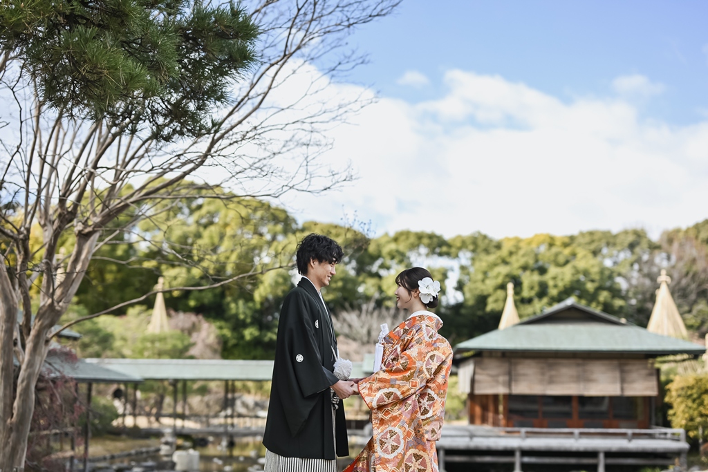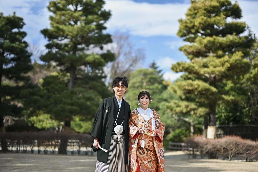 白鳥庭園でのロケーション和装撮影、お疲れ様でした(*^▽^*)一年中美しい自然に囲まれた日本庭園では、青空のもとでのびのびと撮影を楽しんでいただけましたね♪