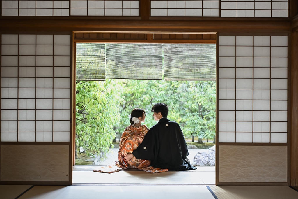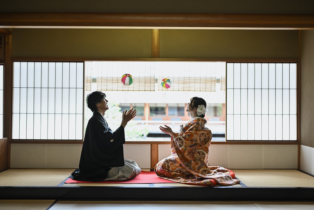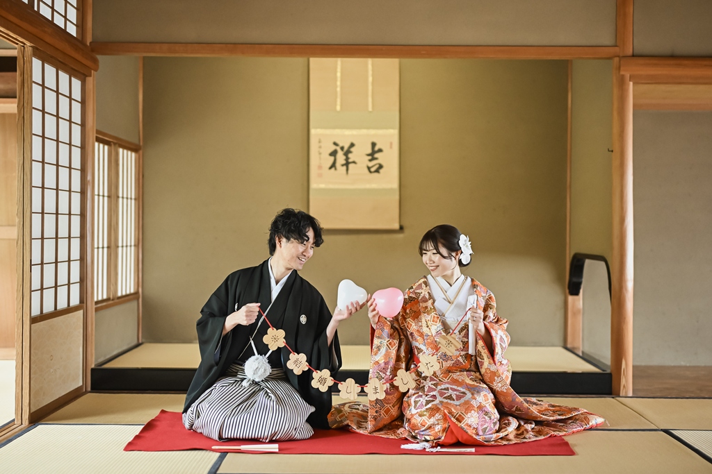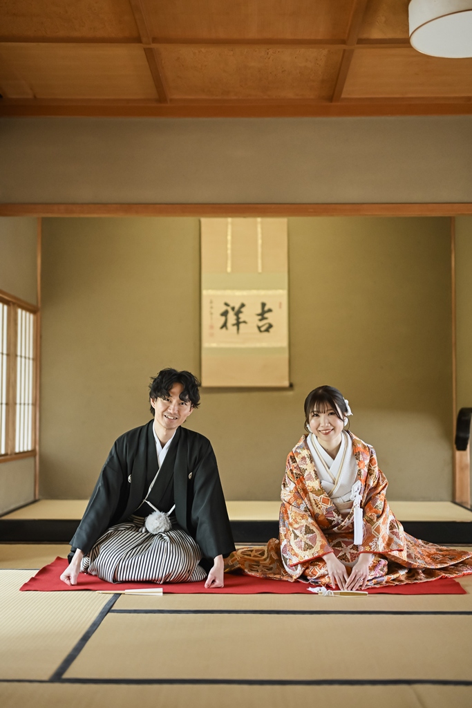 お茶室でのショットもとっても楽しそう(^^♪何よりお二人が本当に仲睦まじいご様子で、幸せ溢れるお写真ばかり♡
