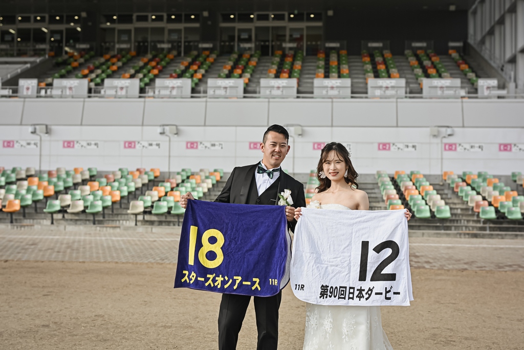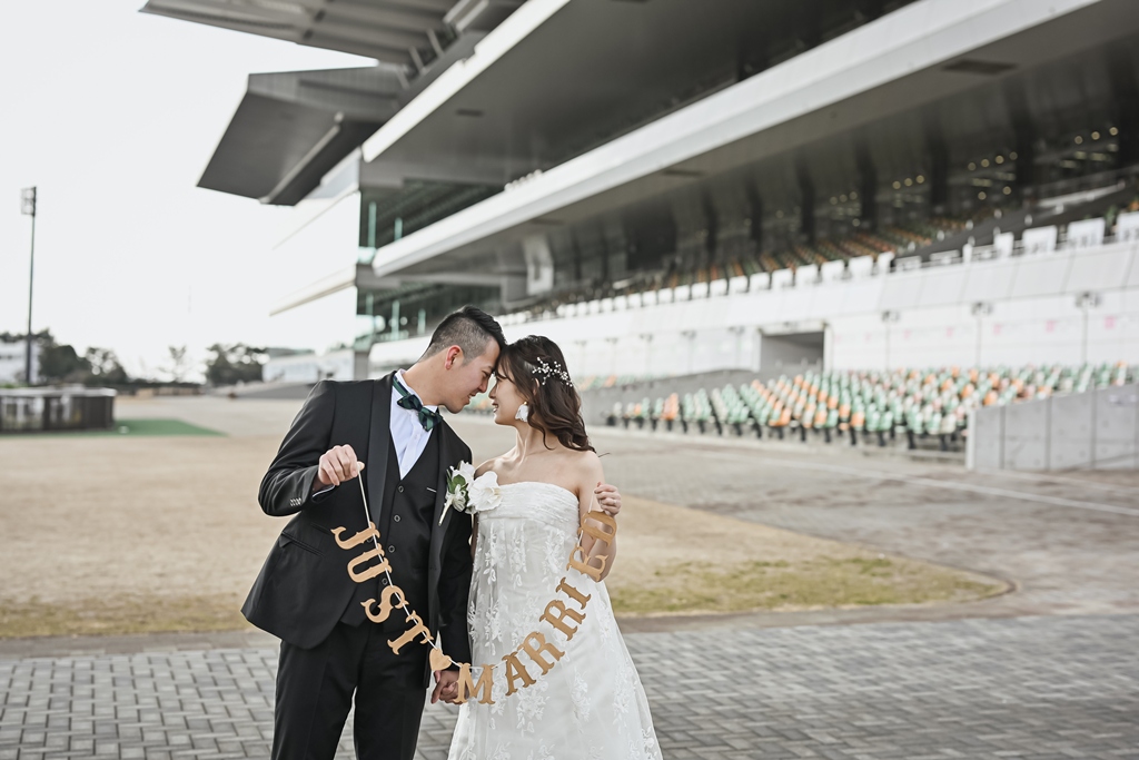 念願の競馬場で一生に一度の記念撮影!! | 名古屋の前撮り&フォトウェディング【公式】WEDDING AVENUE