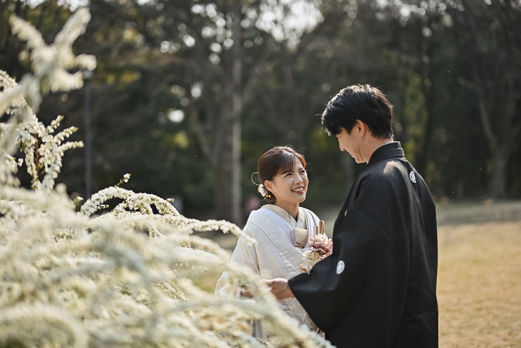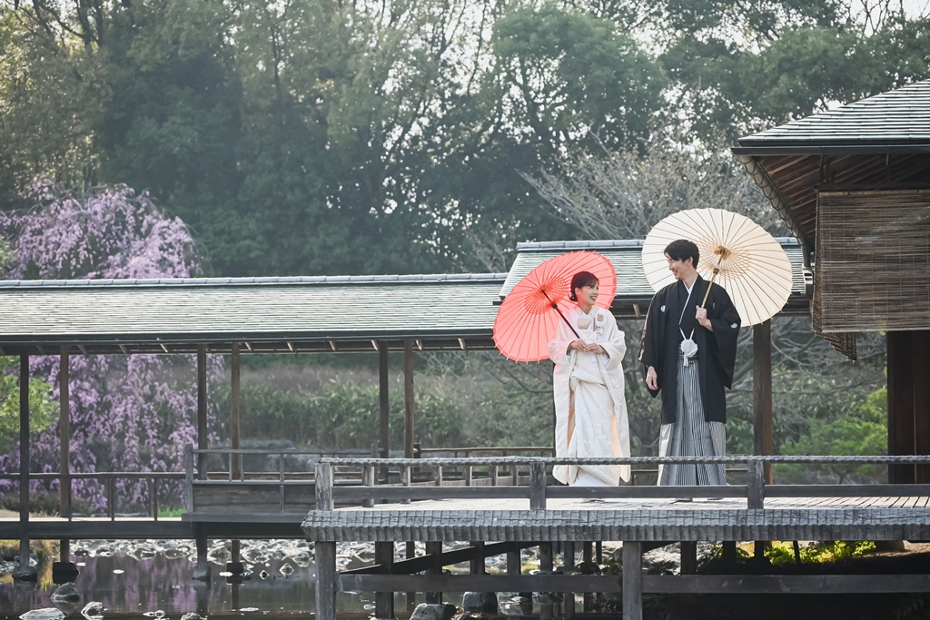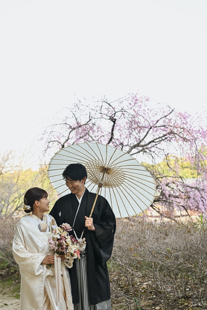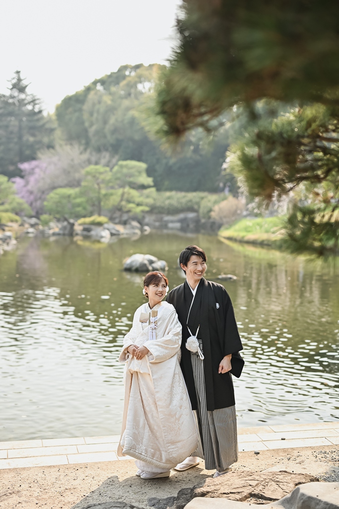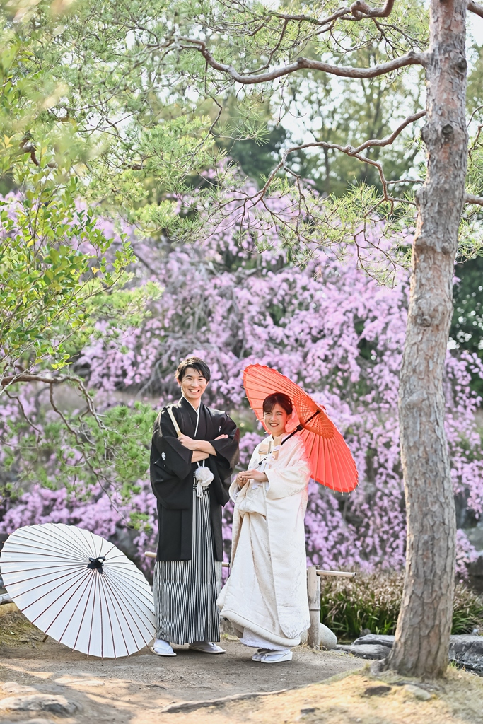 桜も笑顔も咲き誇る【白鳥庭園】和装ウェディングフォト♡