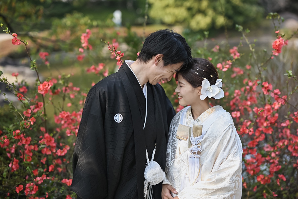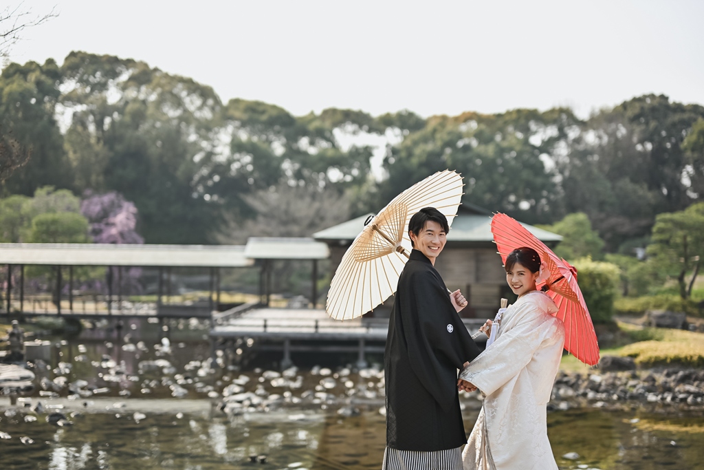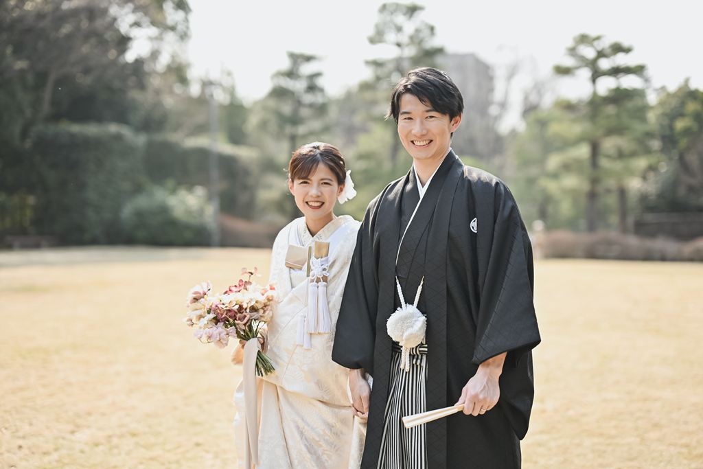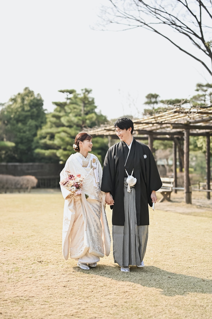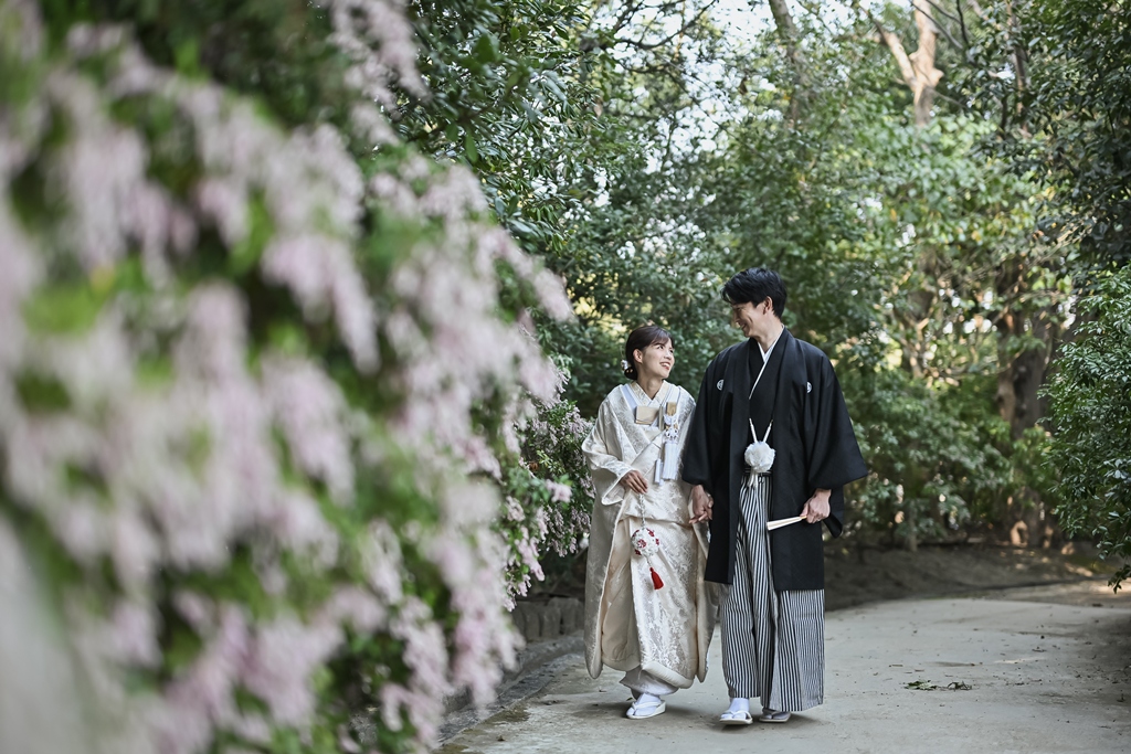 桜も笑顔も咲き誇る【白鳥庭園】和装ウェディングフォト♡