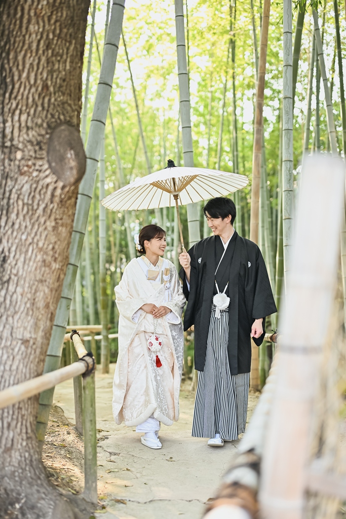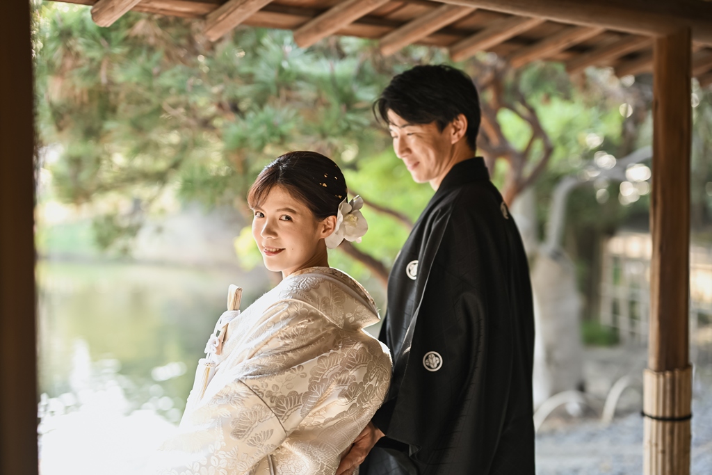 緑も美しく、広い白鳥庭園のお庭を満喫いただけたかと存じます(*^^*)何よりお二人とも和装が本当にお似合い!!
