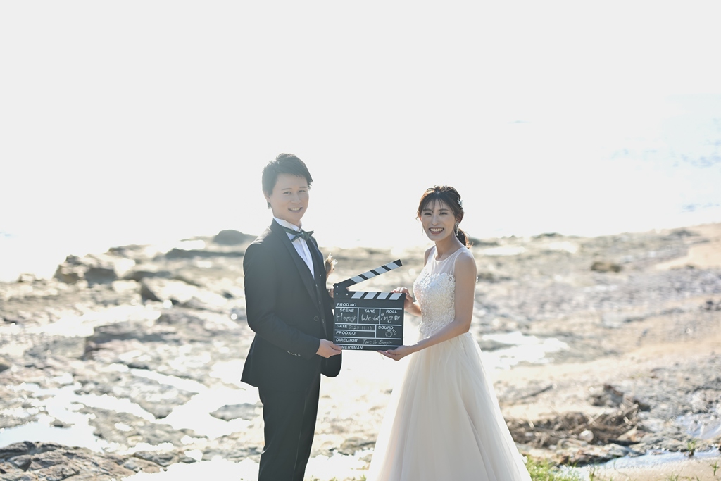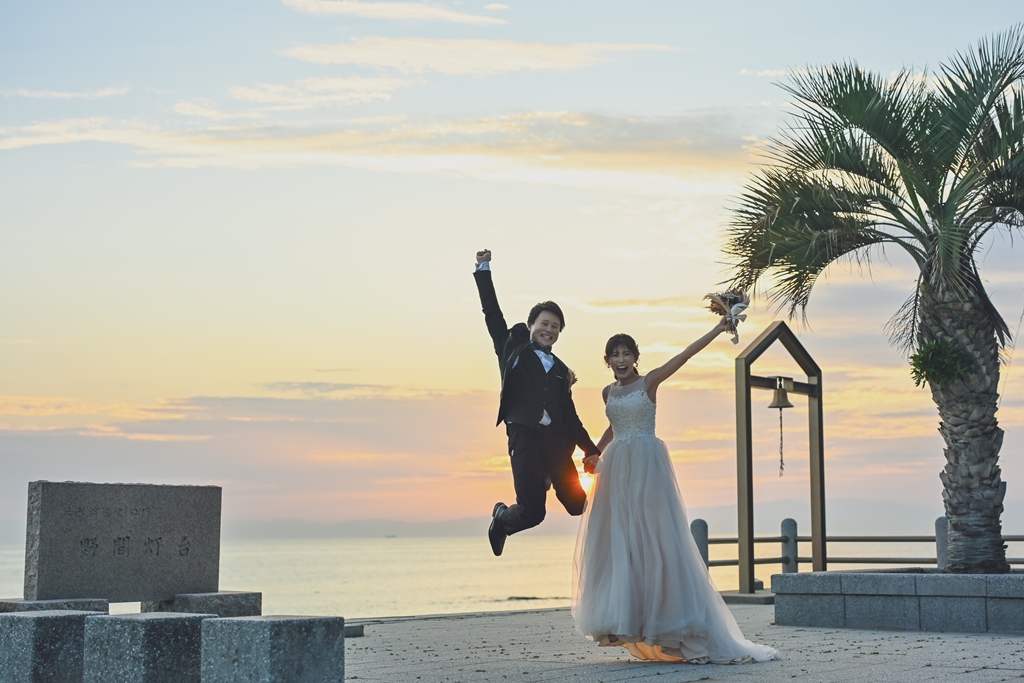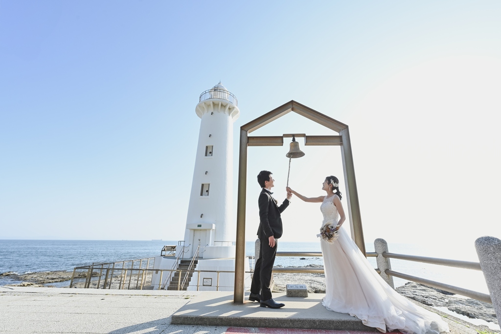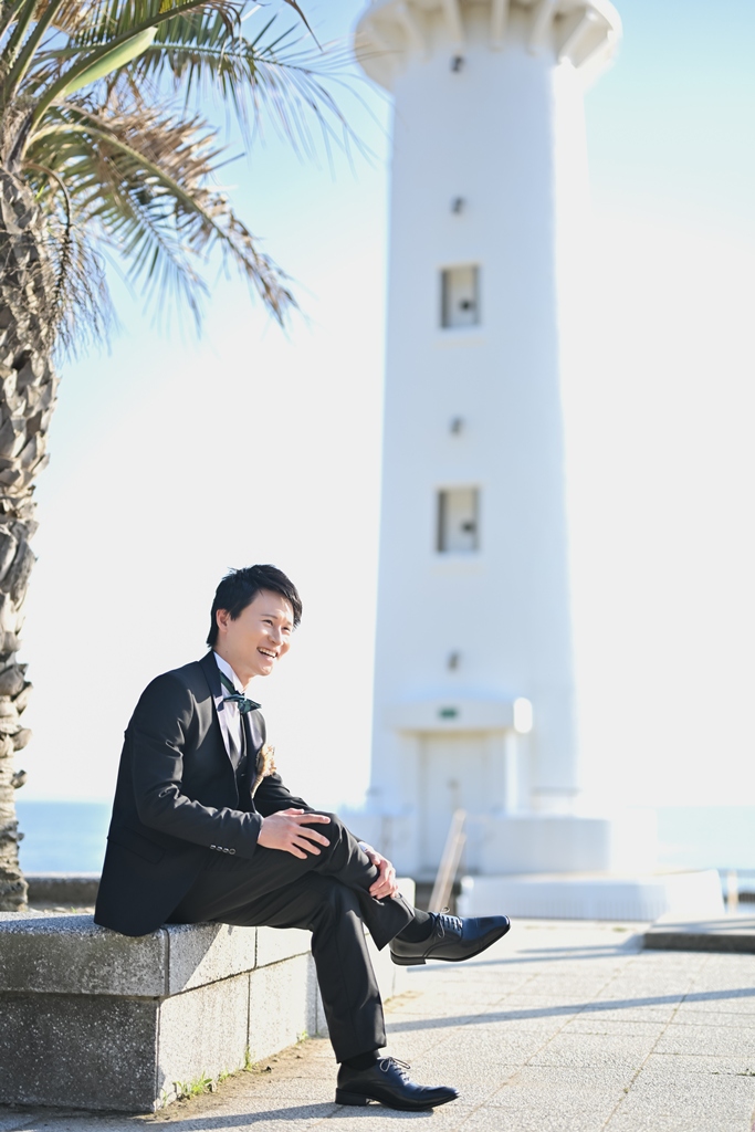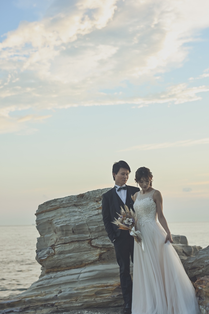 そして、数ある撮影サービスの中から私たちにその一日を託してくださったこと、心より感謝申し上げます。太陽がやさしく降りそそぐ海辺に、純白のドレスが美しく映え、風に揺れるベールがまるで祝福のようにおふたりを包み込む。
