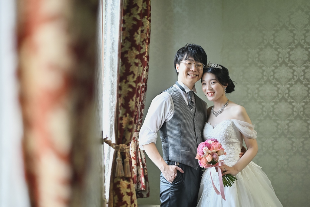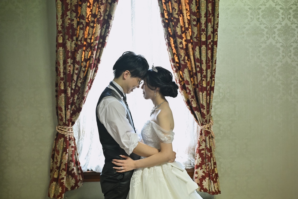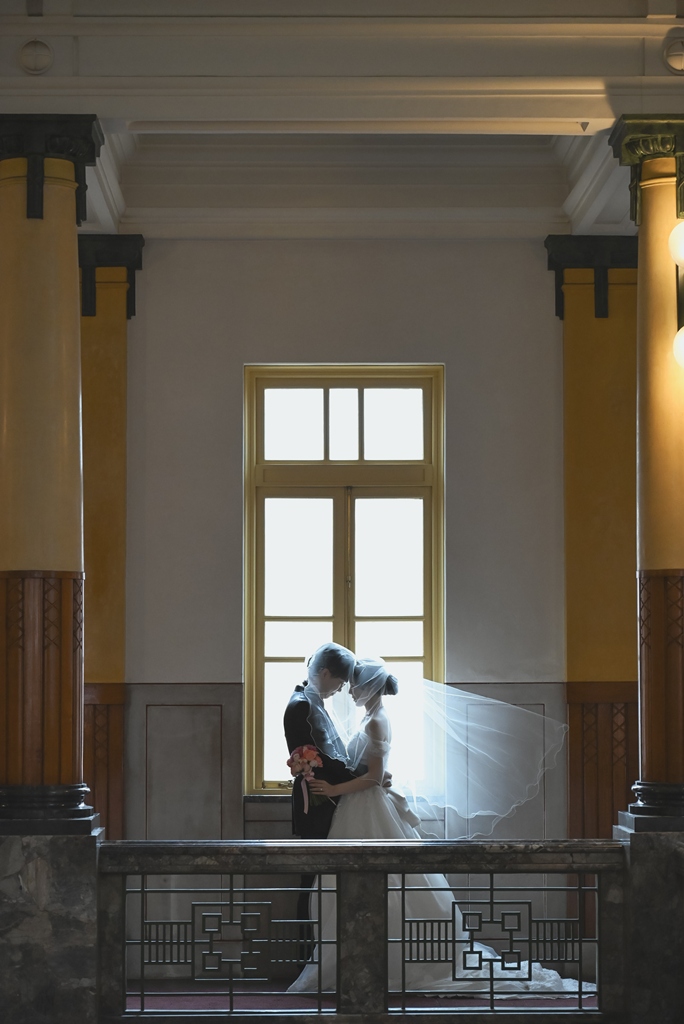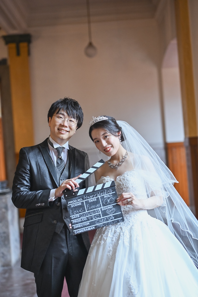 大切な前撮りという特別な日に立ち会わせていただき、おふたりの幸せやときめきを間近で感じながら、その瞬間を写真に刻むことができたことを心から光栄に思います。館内に差し込む柔らかな光がドレスやタキシードに反射して、まるで時を超えた物語の主人公のようにおふたりを包み込み、その一瞬一瞬がとても印象的でした。