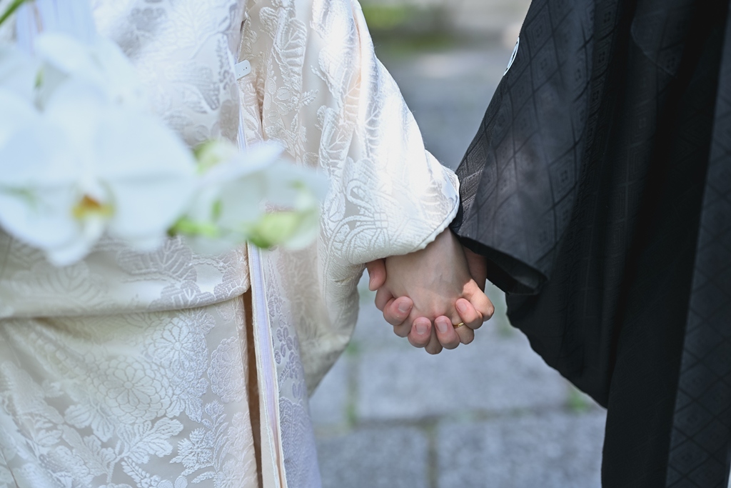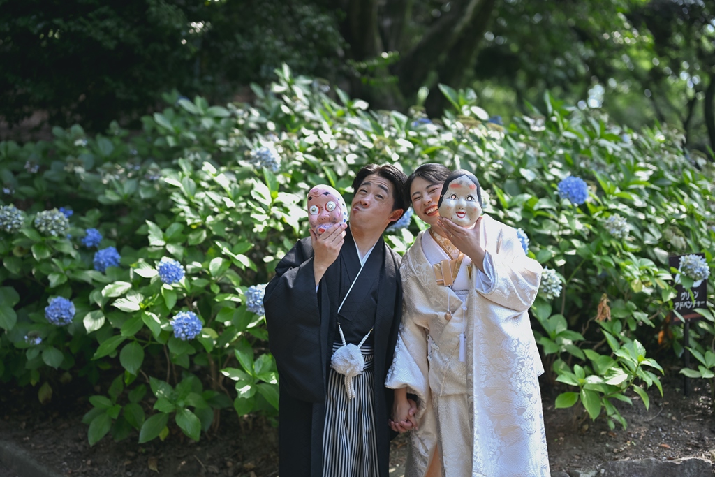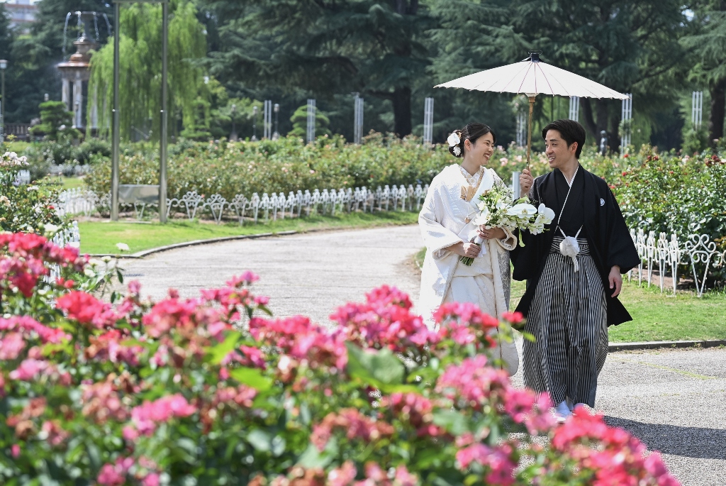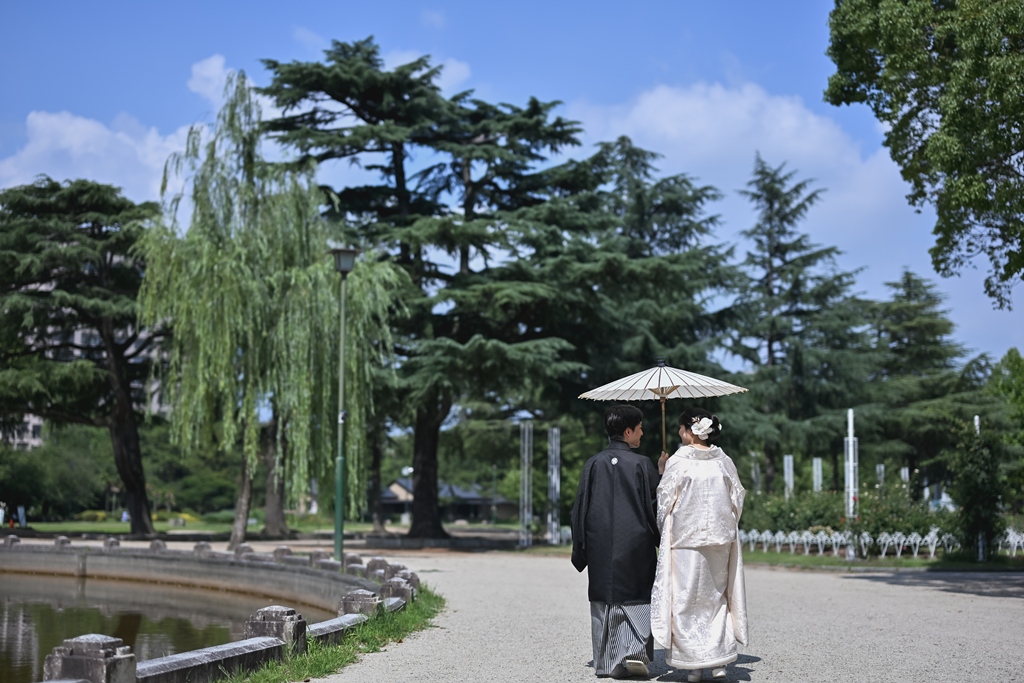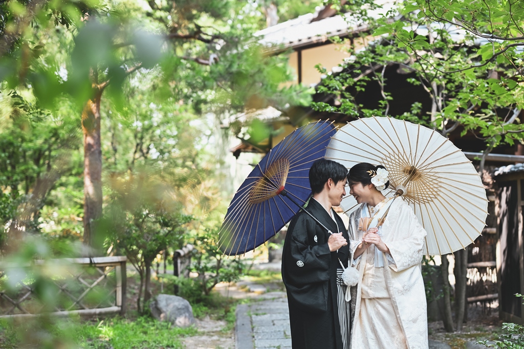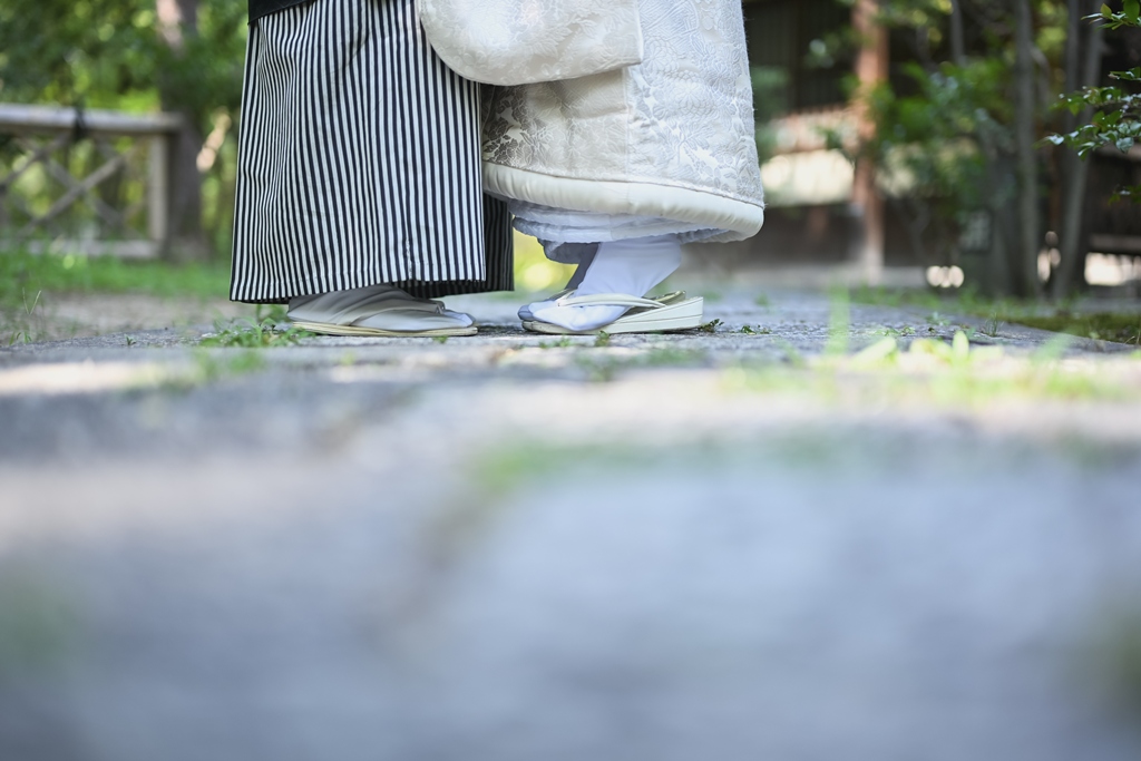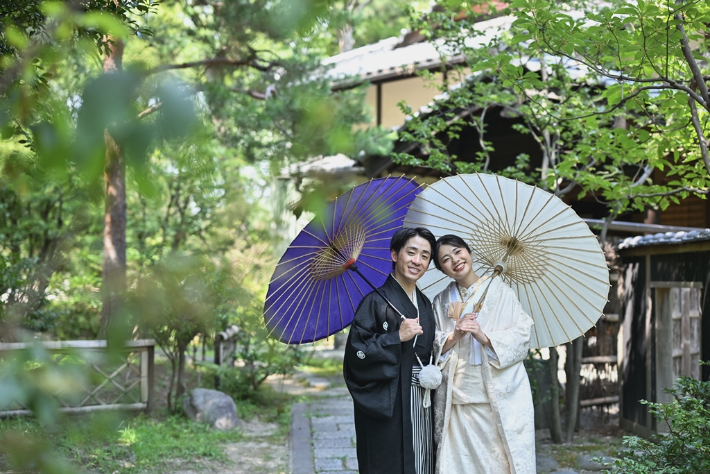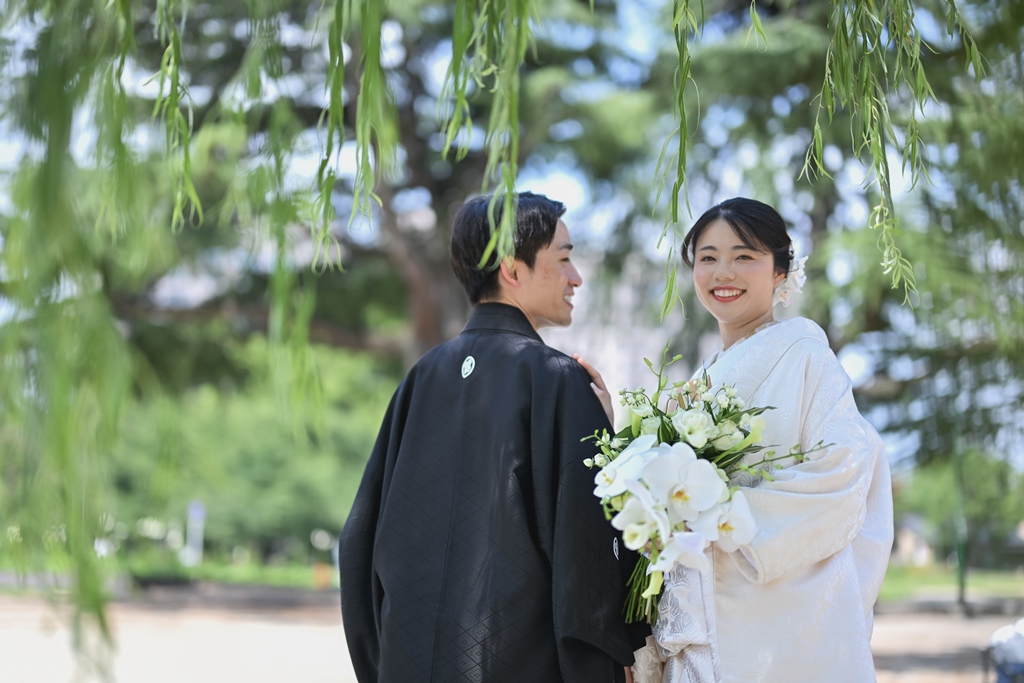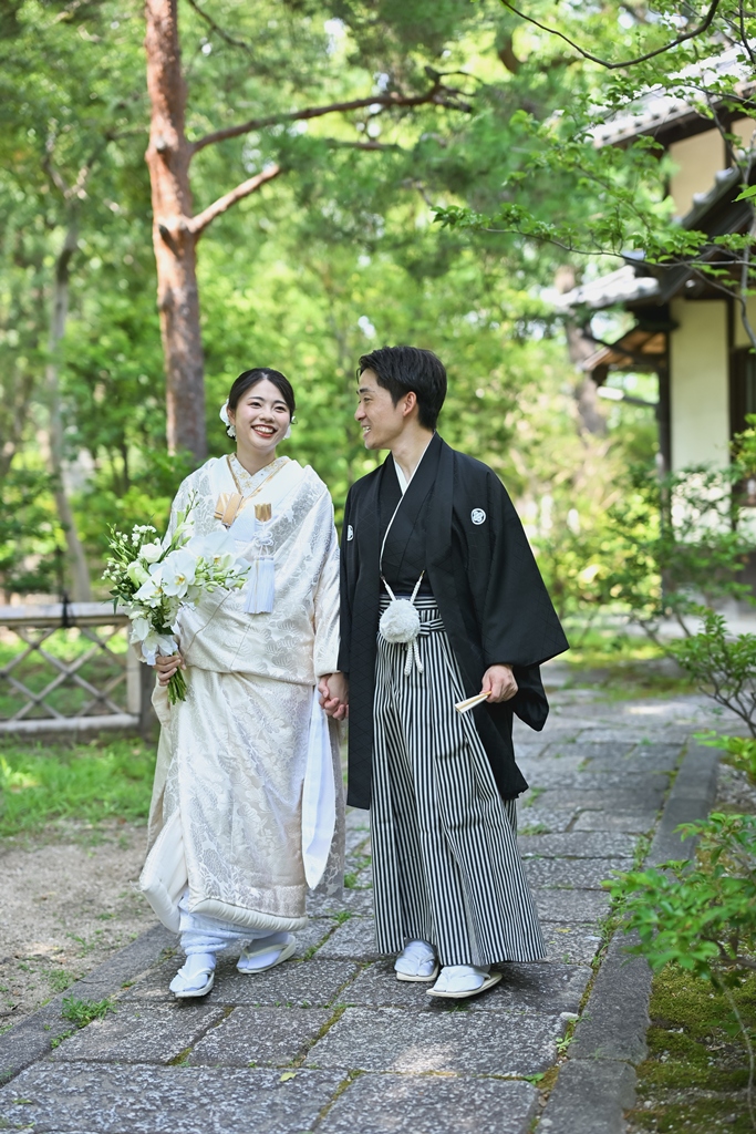四季折々の風情が感じられる庭園の中で、おふたりの姿がまるで日本画のように映え、まさに「和」の美しさを極めた一日となりました。