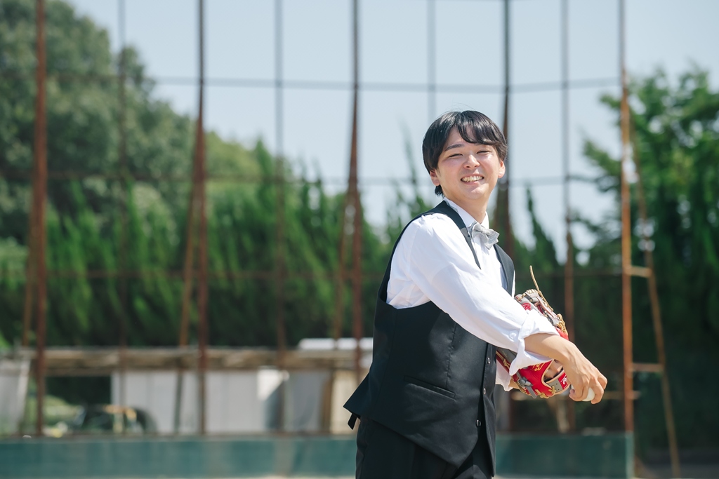 STAFF スタッフからお礼の言葉 阿久比中学校という思い出深い場所で、洋装での前撮りという特別な時間を共に過ごさせていただき、本当にありがとうございました。お二人が選ばれた洋装は、洗練されたスタイルと自由な個性を表現できる素敵な装いであり、その一着一着に込められたお二人の想いやこだわりが、写真の中で美しく輝いています。