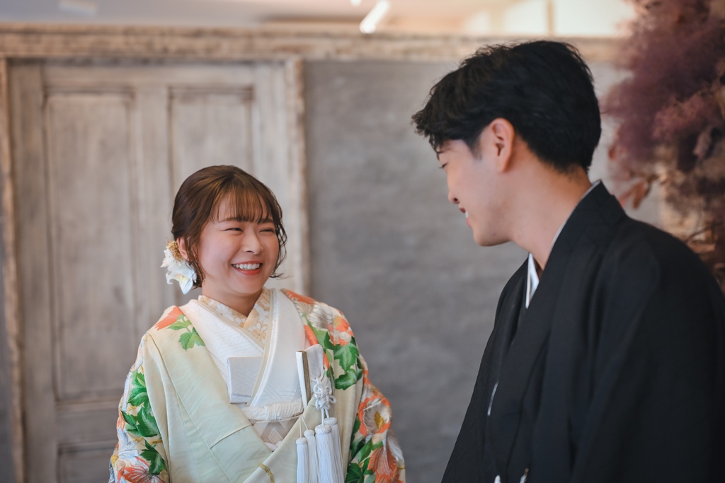 光と陰影が織りなすスタジオの空気感が、おふたり本来の柔らかさと幸せな雰囲気をいっそう引き立て、心温まるシーンが次々と生まれておりました。和装での凛とした美しさ、洋装での明るく華やかな表情。