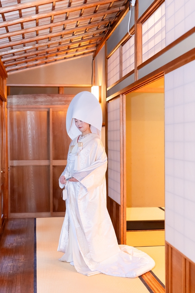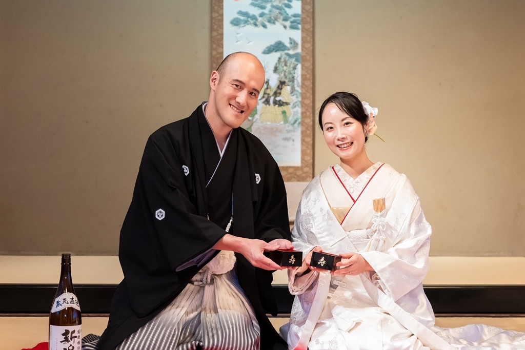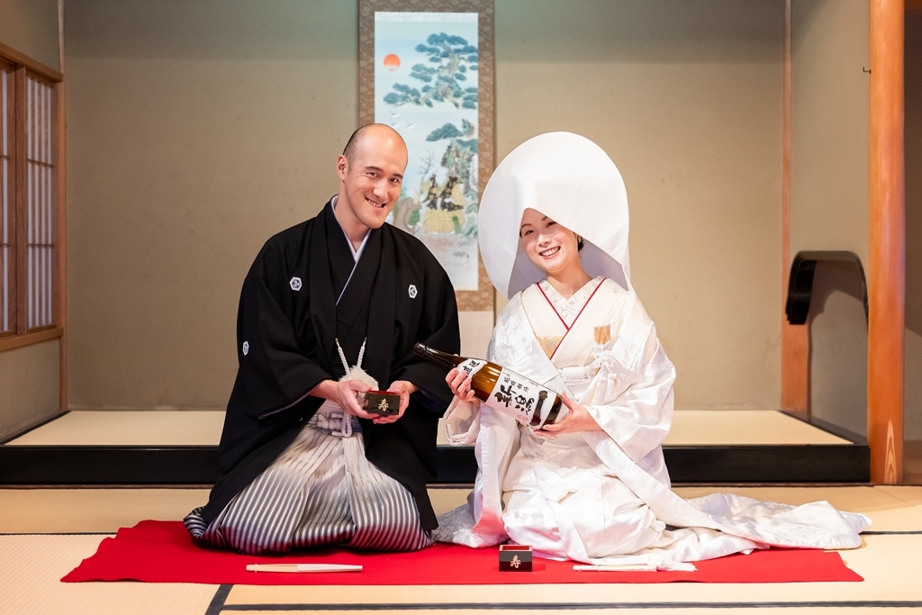 白無垢の柔らかな白さと、お持ち込みいただいたお酒との雰囲気がとてもいいですね♪