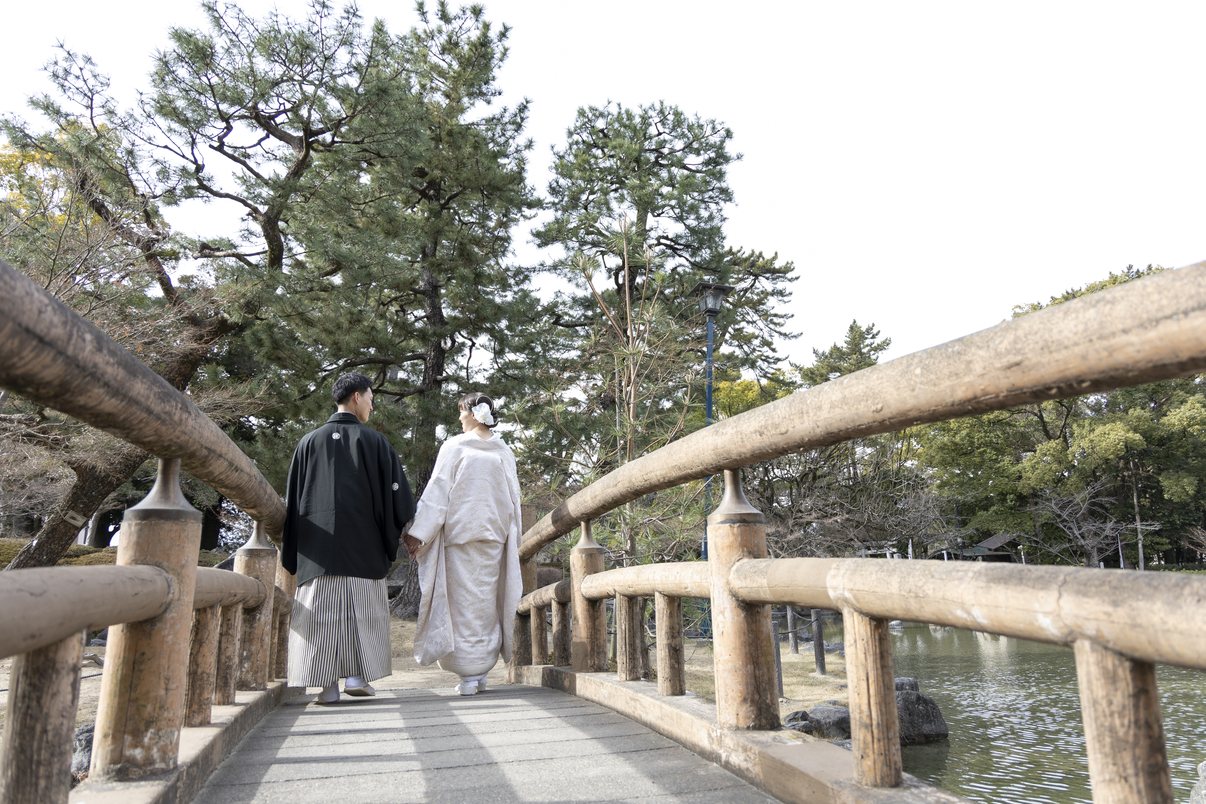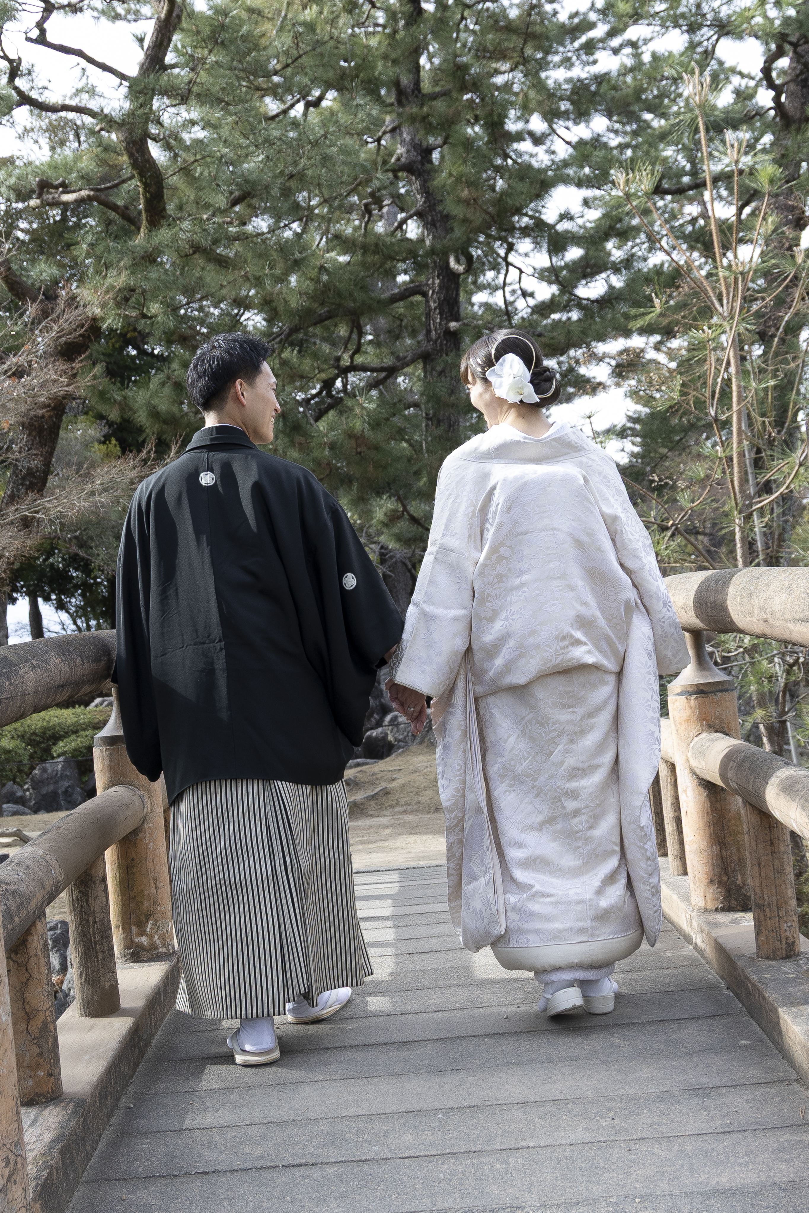 和装にとてもよく合うロケーションだと感じたため、この撮影場所を選びました。自然や建物の雰囲気が落ち着いていて、日本らしさを感じられる点が魅力的でした。和装の良さをより引き立ててくれる場所だと思い、特別な一日を残すのに最適だと感じました。