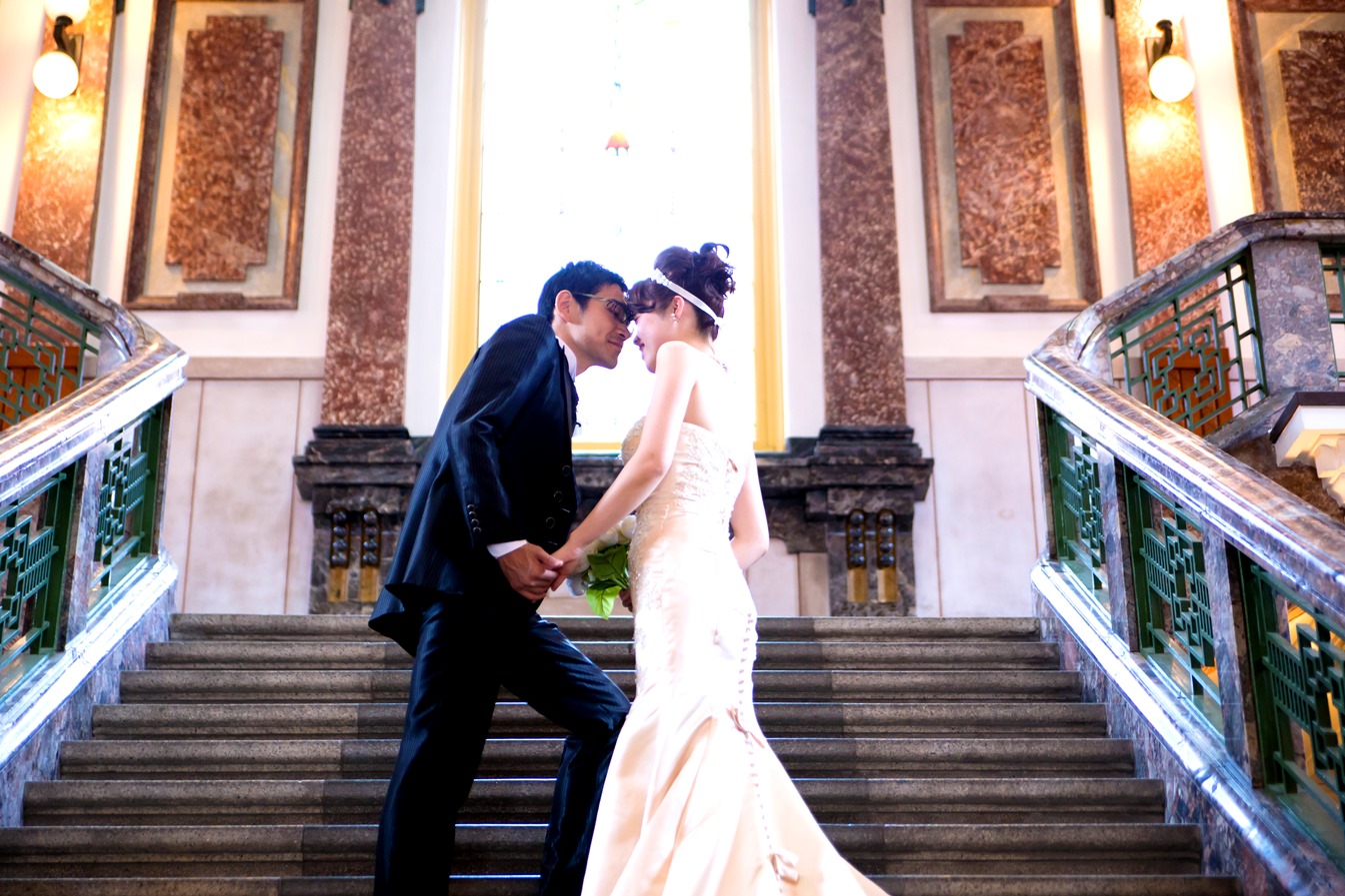 市政資料館での撮影は、大人な雰囲気のお二人にすごくお似合いです♡