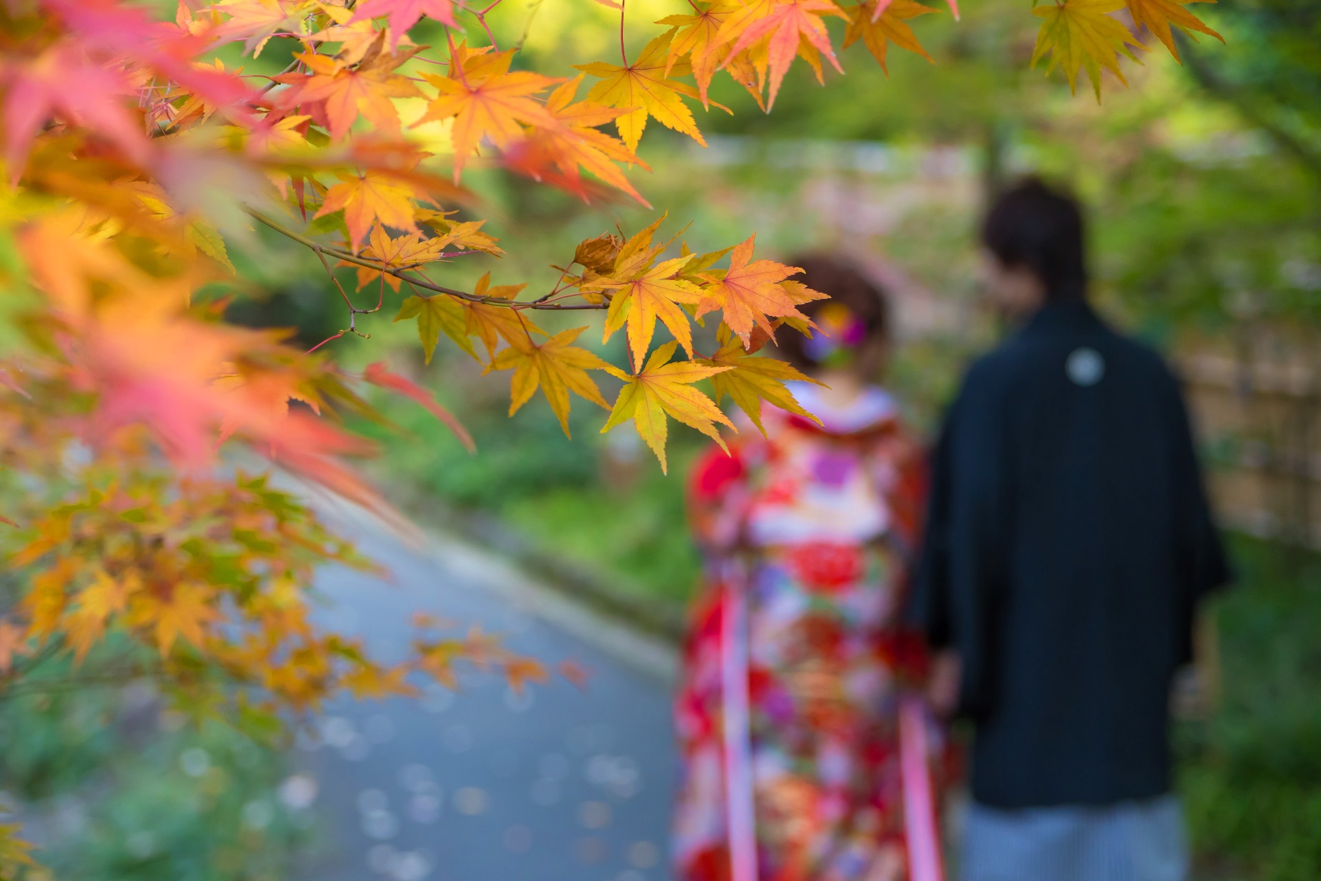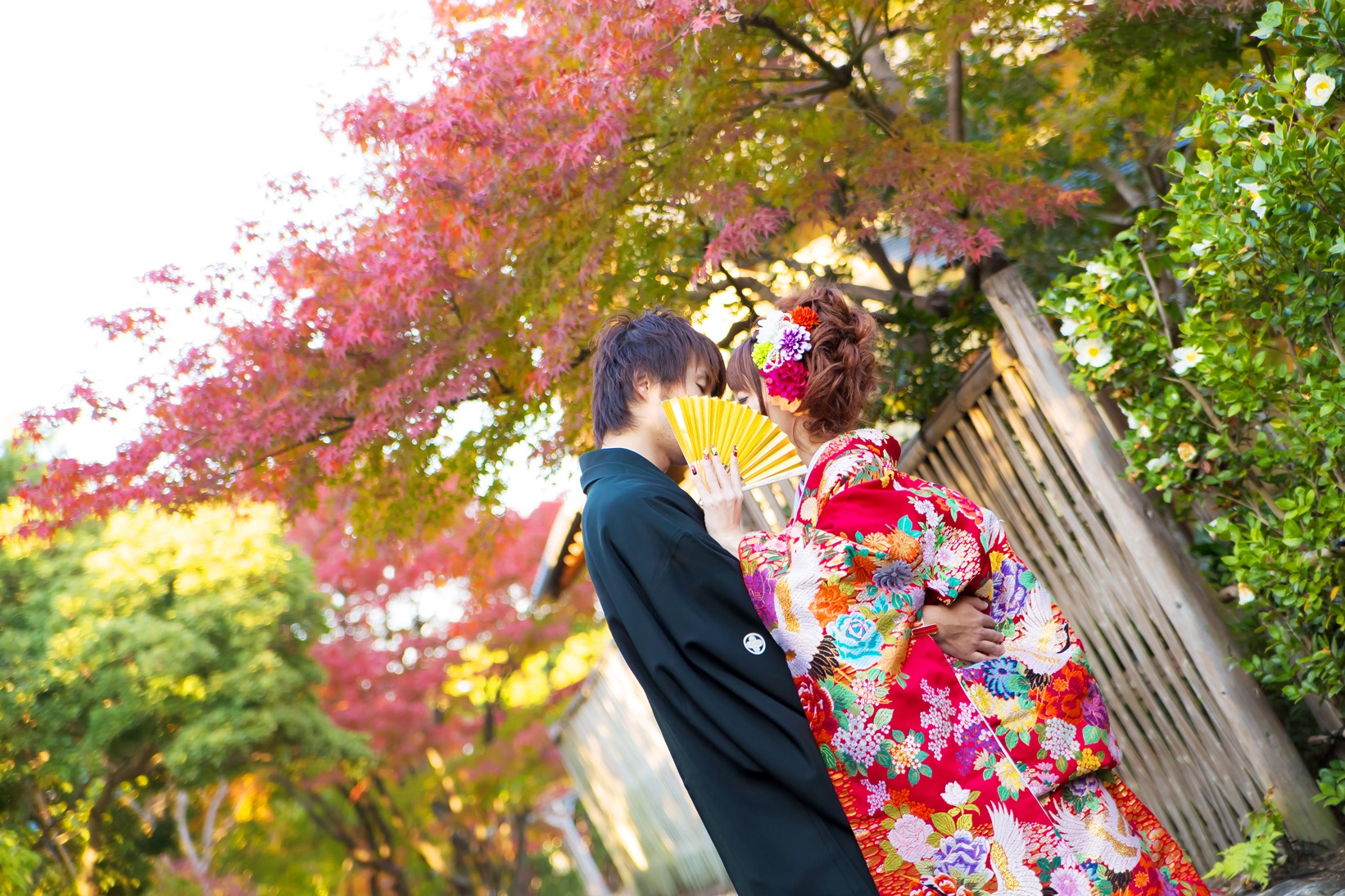 紅葉もきれいなこの時期に前撮り撮影されたおふたり。
