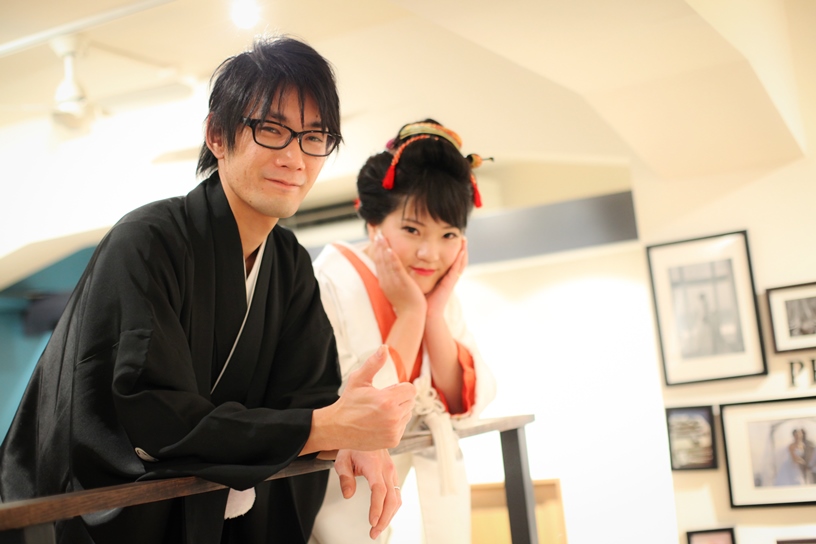 ヘアメイクも洋髪ではなく、衣装に合うヘアスタイルにしてトータルでコーディネート。当店のアンティークなアトリエの雰囲気と、新婦様のアンティークの様な風合いのキモノがとてもステキでした。