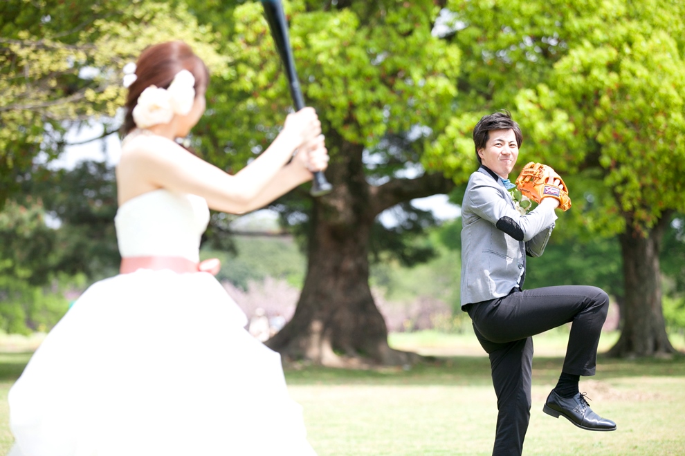 新郎様がずっとやってきた、『野球』を一つテーマに、とってもかわいい前撮り撮影になりました(^^)