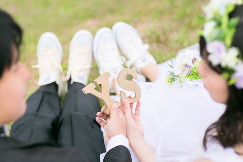 お揃いのコンバースのスニーカーで公園フォト | 名古屋の前撮り&フォトウェディング【公式】WEDDING AVENUE