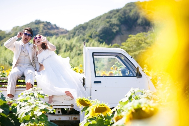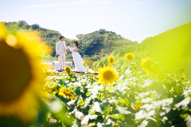 ひまわり畑での前撮り撮影を希望されたおふたり。